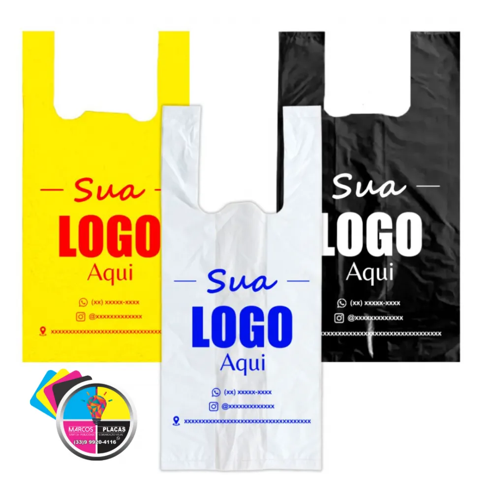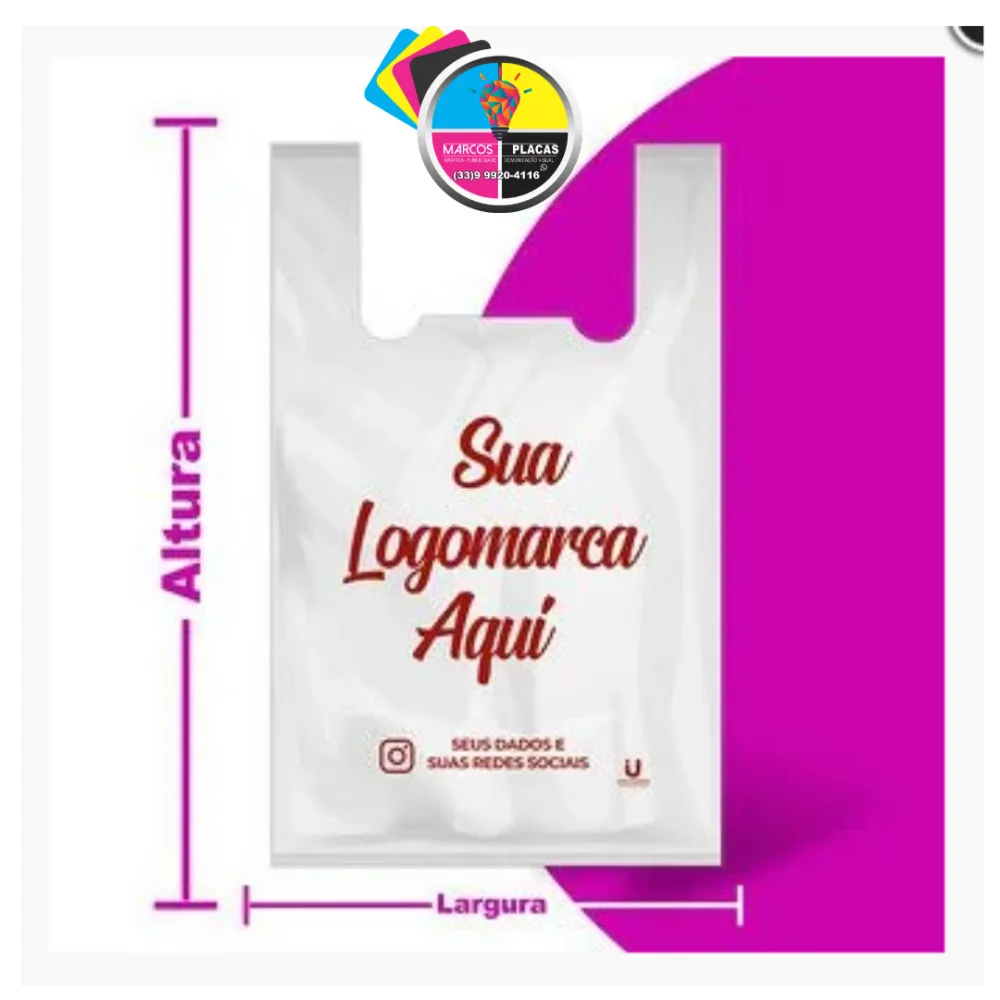 A cor da arte pode variar de acordo com o tamanho da sacola.